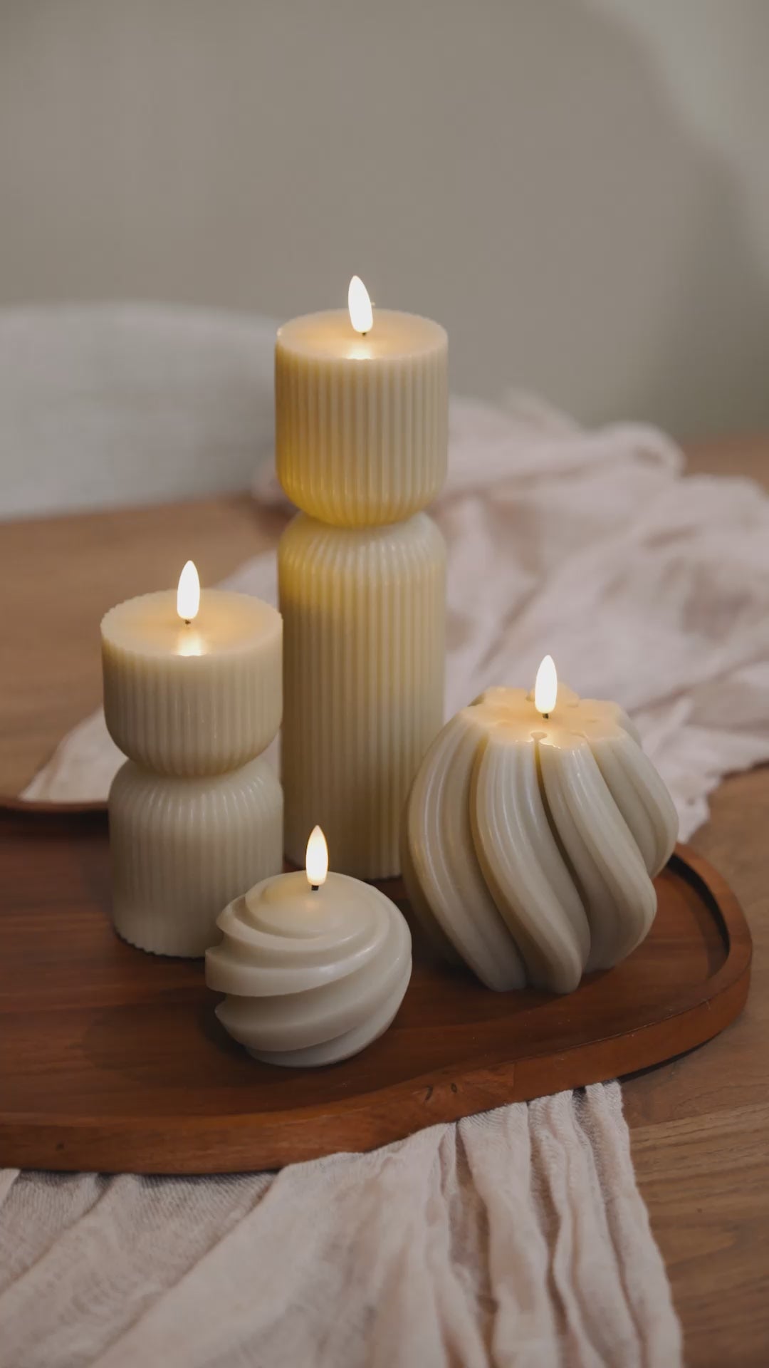 SWIRL RUNDE LED KERZE BEIGE - AB